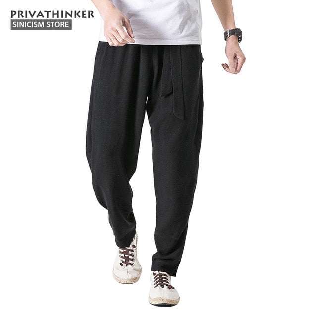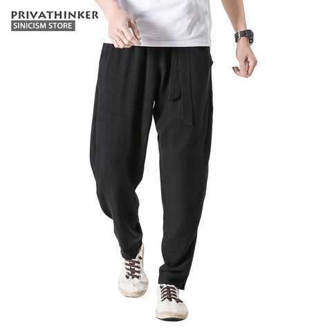 MrGoldenBowl Store Size Plus 5XL Cotton Linen Harem Pants Men Belt Jogger Pants Male Trousers Chinese Traditional Cloths