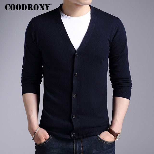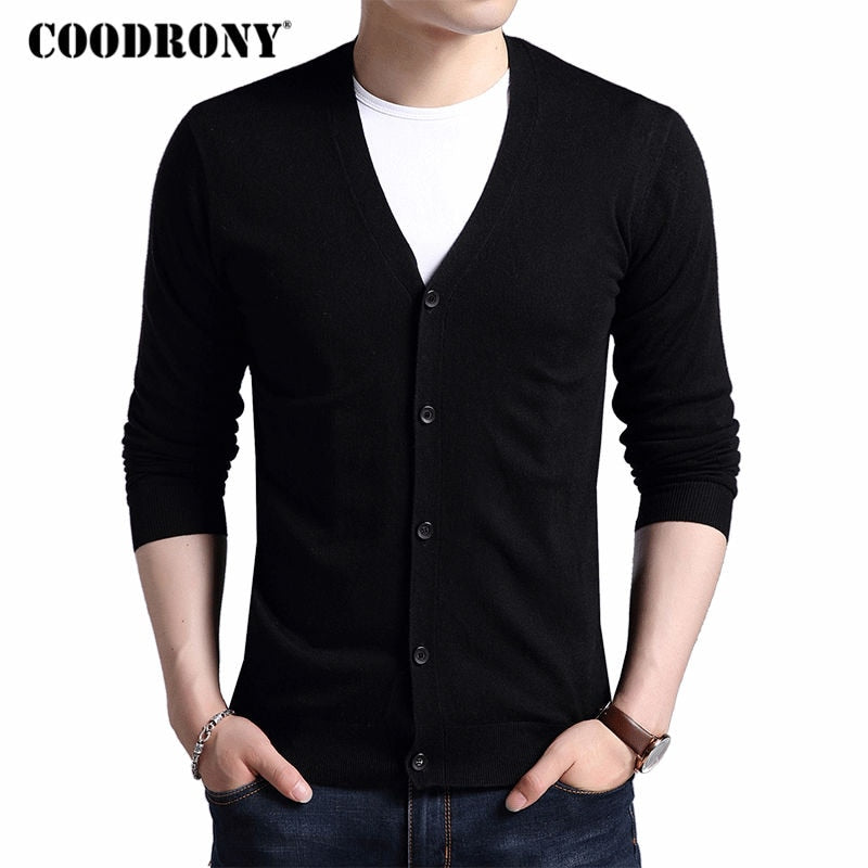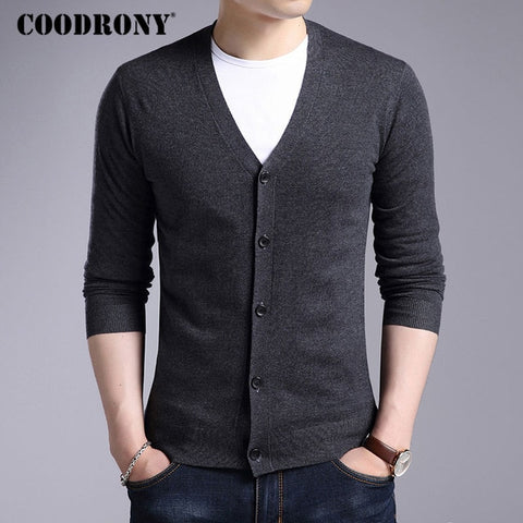 COODRONY Cardigan Men 2020 Autumn Winter Soft Warm Cashmere Wool Sweater Men Pure Color Classic Casual V-Neck Cardigans Top 7402