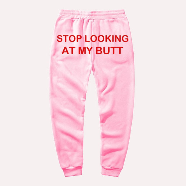 Stop Looking At My Butt stacked Sweatpants Women Print Sweat Pants Women Casual baggy Trousers men Hippie Track Pants pantalon