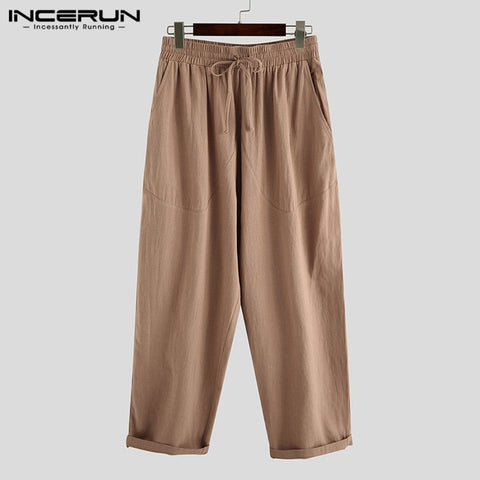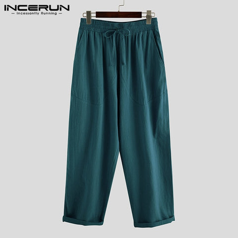 INCERUN Cotton Harem Pants Men Plain Elastic Waist Streetwear Joggers 2020 Baggy Drop-crotch Pants Pockets Casual Trousers Men