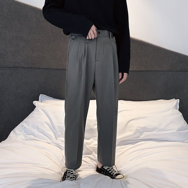 Summer Thin Straight Casual Pants Men's Fashion Solid Color Business Dress Pants Men Streetwear Loose Korean Suit Pants Mens